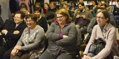 Come immaginate la sala si è riempita in un battibaleno: erano presenti praticamente tutte le partecipanti allo Stitch'nd Spritz, moltissime affezionate al negozio filrouge provenienti da Gorizia, parecchie persone dal Veneto e perfino qualche elemento dalla Slovenia! E molte persone non le conoscevamo nemmeno anche se alla fine con qualcuna abbiamo fatto amicizia. :)